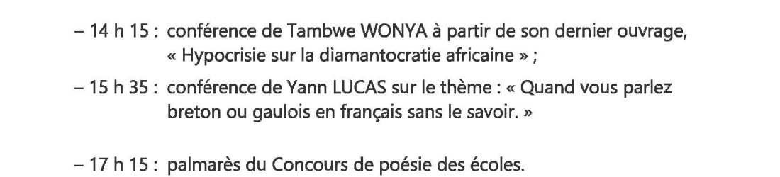 – 11 h : palmarès du Concours de nouvelles.