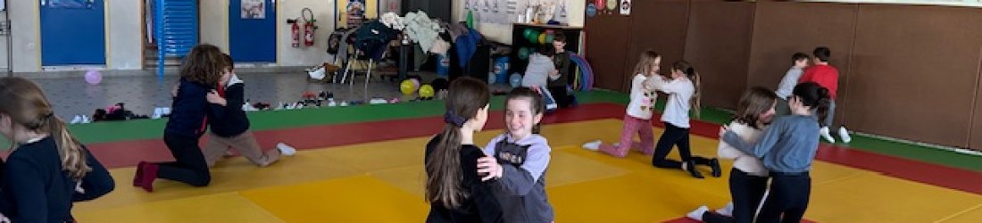 Cette période nous avons la chance de bénéficier de la salle de judo de la commune pour pratiquer des jeux de lutte.