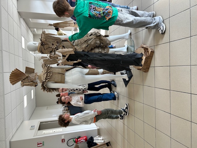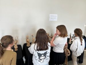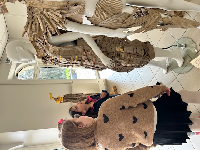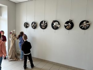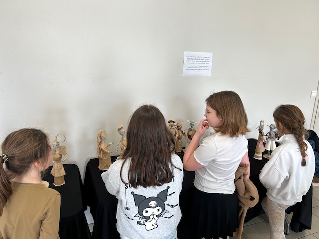 Les élèves ont observé avec curiosité les détails des créations : les volumes et les lignes qui donnent vie aux personnages. Cette immersion artistique leur a permis de découvrir comment un objet du quotidien peut devenir un support d’imagination et de création.