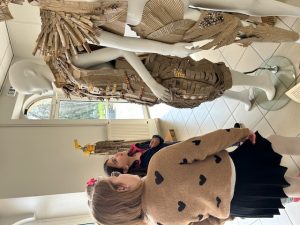 Au fil de la visite, les enfants ont plongé dans un univers original où le carton devient matière poétique. À travers des formes découpées, des silhouettes et des coiffes inspirées notamment de la tradition bretonne, l’artiste transforme ce matériau simple en véritables œuvres d’art.