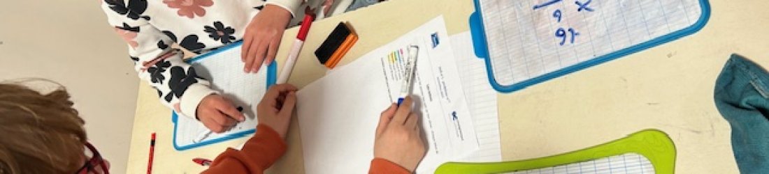 Cette année, les élèves participent aux « défis maths » proposés par la DDEC. Ainsi par groupe de quatre élèves, ils sont amenés à résoudre des problèmes variés impliquant une grande capacité d’abstraction et de réflexion. En groupe, ils doivent rédiger une réponse claire et précise à l’énoncé proposé en suscitant le moins possible l’intervention de l’enseignante.