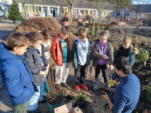 Guidés par ses conseils, les enfants ont planté des graines, bulbes et jeunes plants dans différents espaces de la cour, mais aussi à l’entrée de l’école.