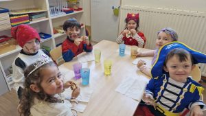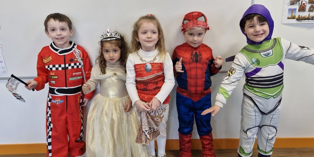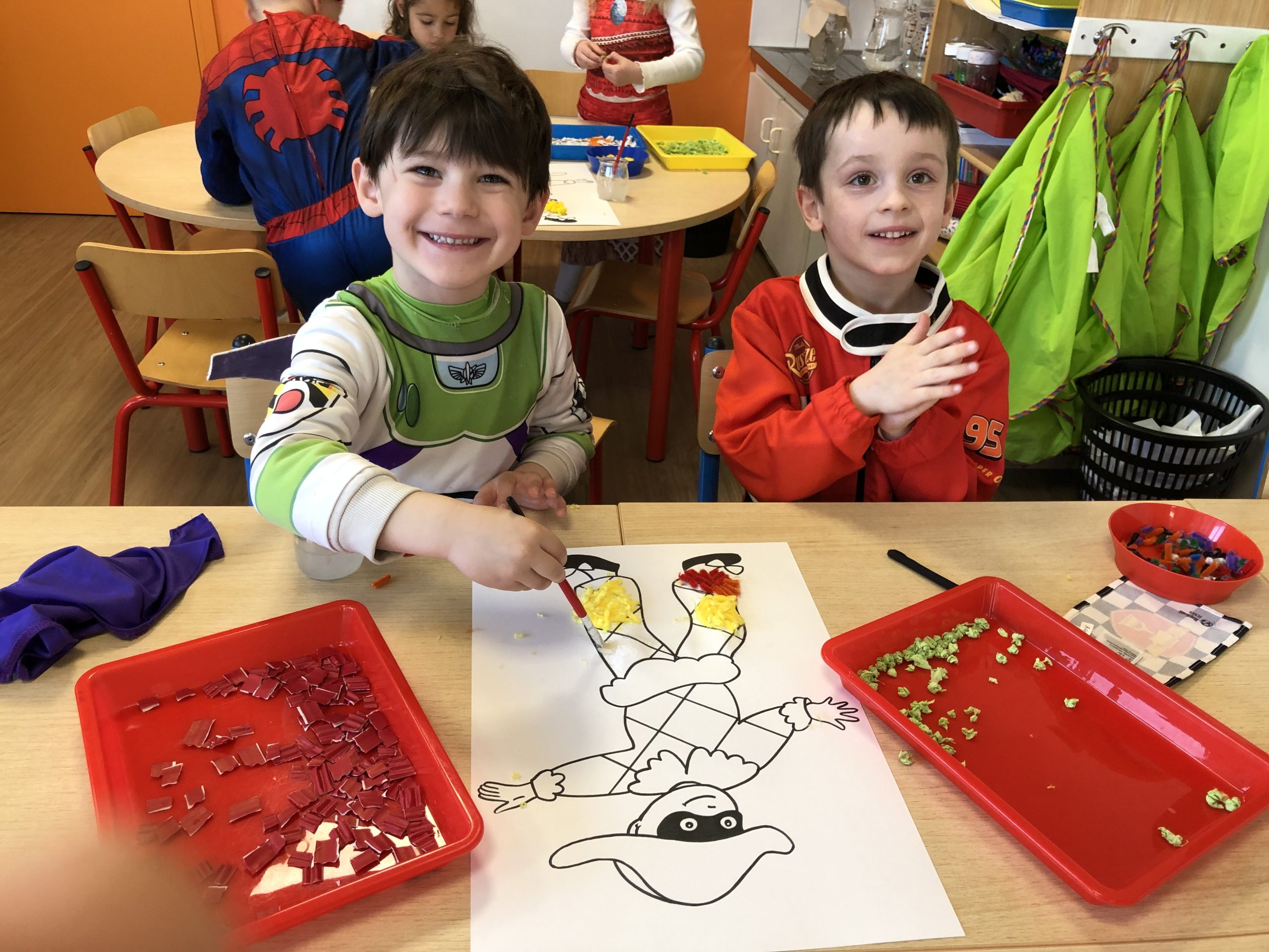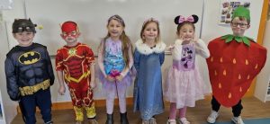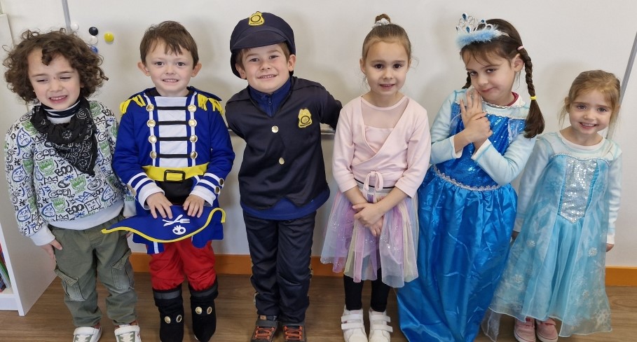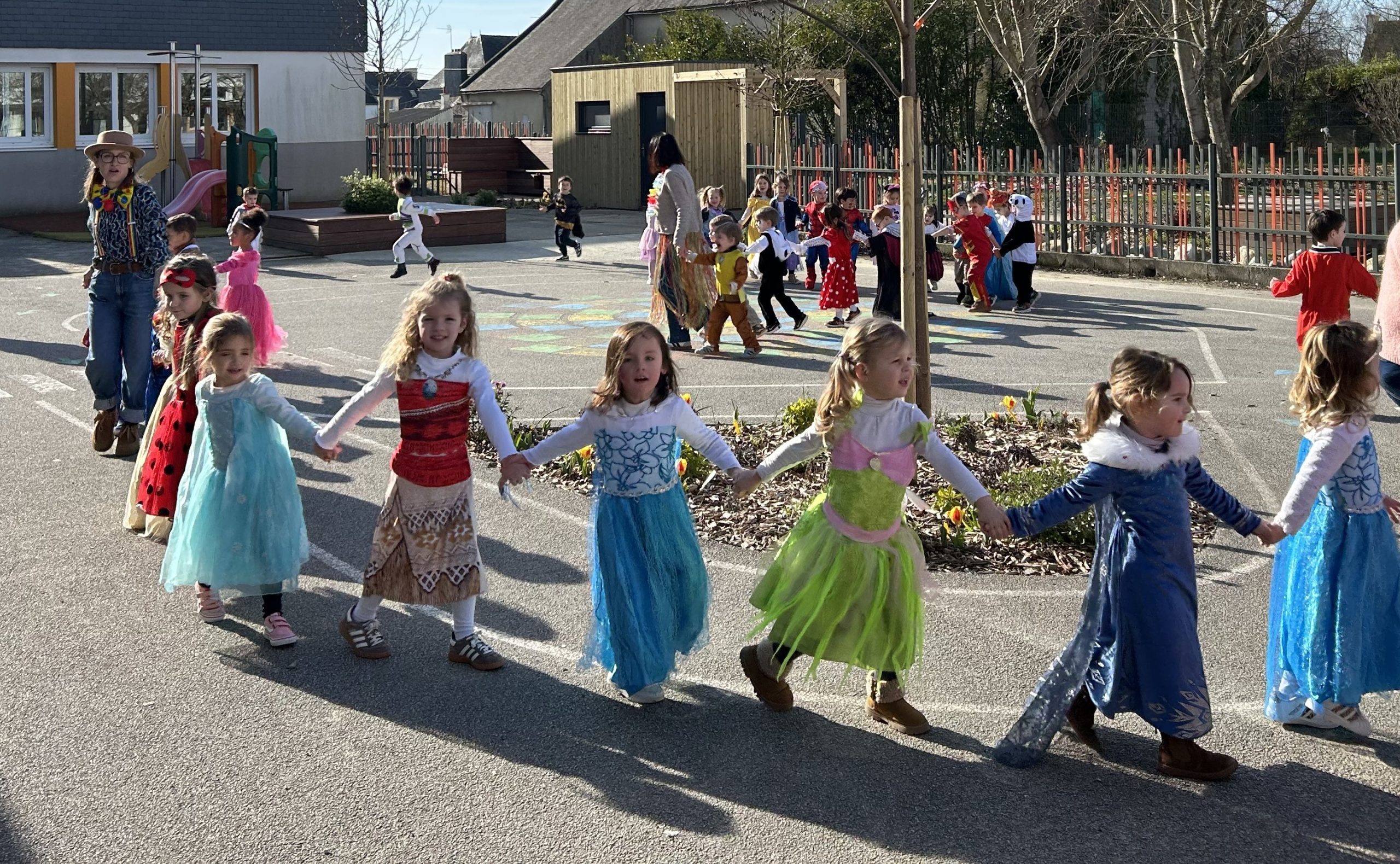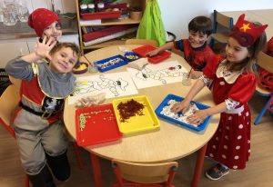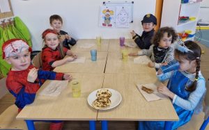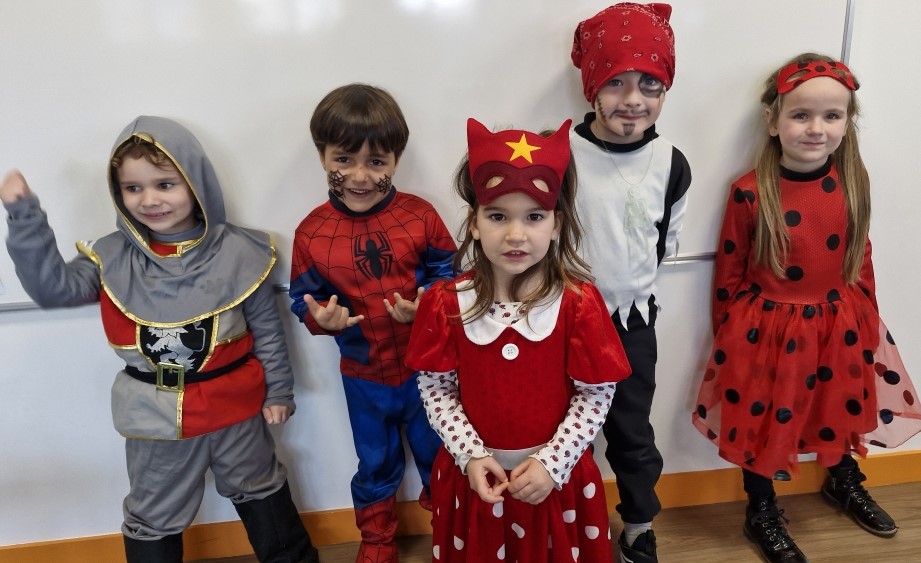 Les enfants sont arrivés avec leur déguisement. En effet, on a vu rentrer dans la classe 2 pirates, Elsa, une fraise, Minnie, Flash, une fée, une danseuse, Batman, Spiderman, Miraculous, Buz l’éclair, Vaiana, un policier, un clown, une indienne, des princesses, Flash McQueen,…