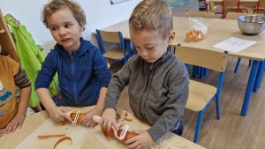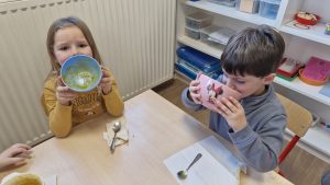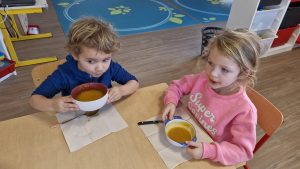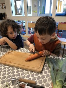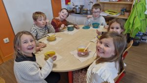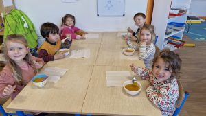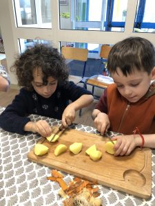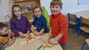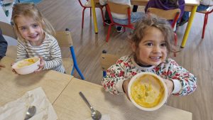 En lien avec un album vu en classe, nous avons préparé une soupe de légumes à l’école.