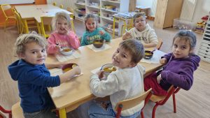 Une bonne odeur s’est répandue dans le hall de la maternelle lors de la cuisson.