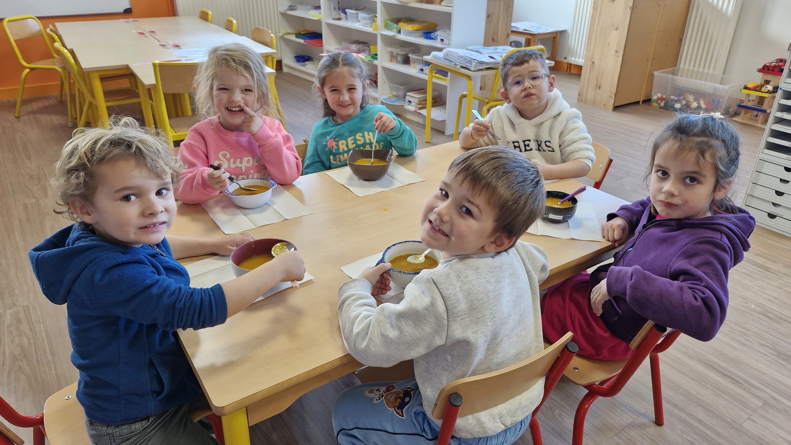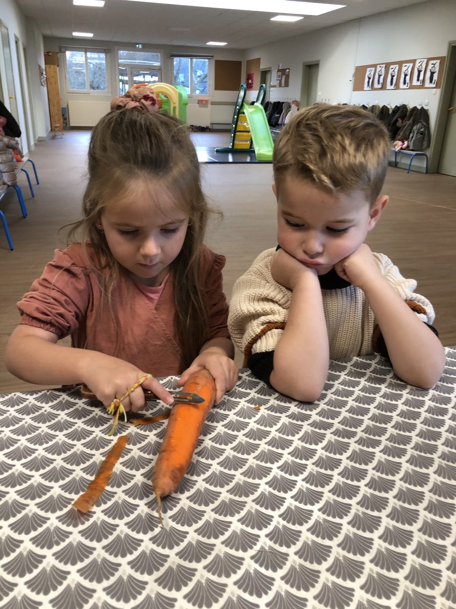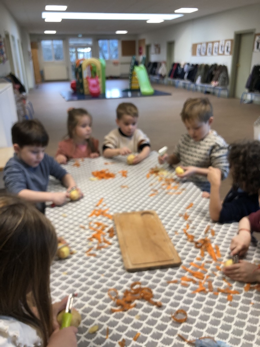 En lien avec un album vu en classe, nous avons préparé une soupe de légumes à l’école.