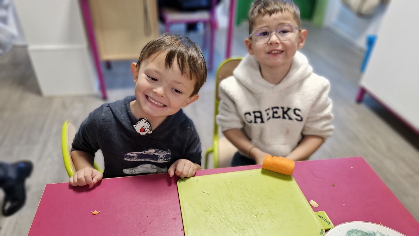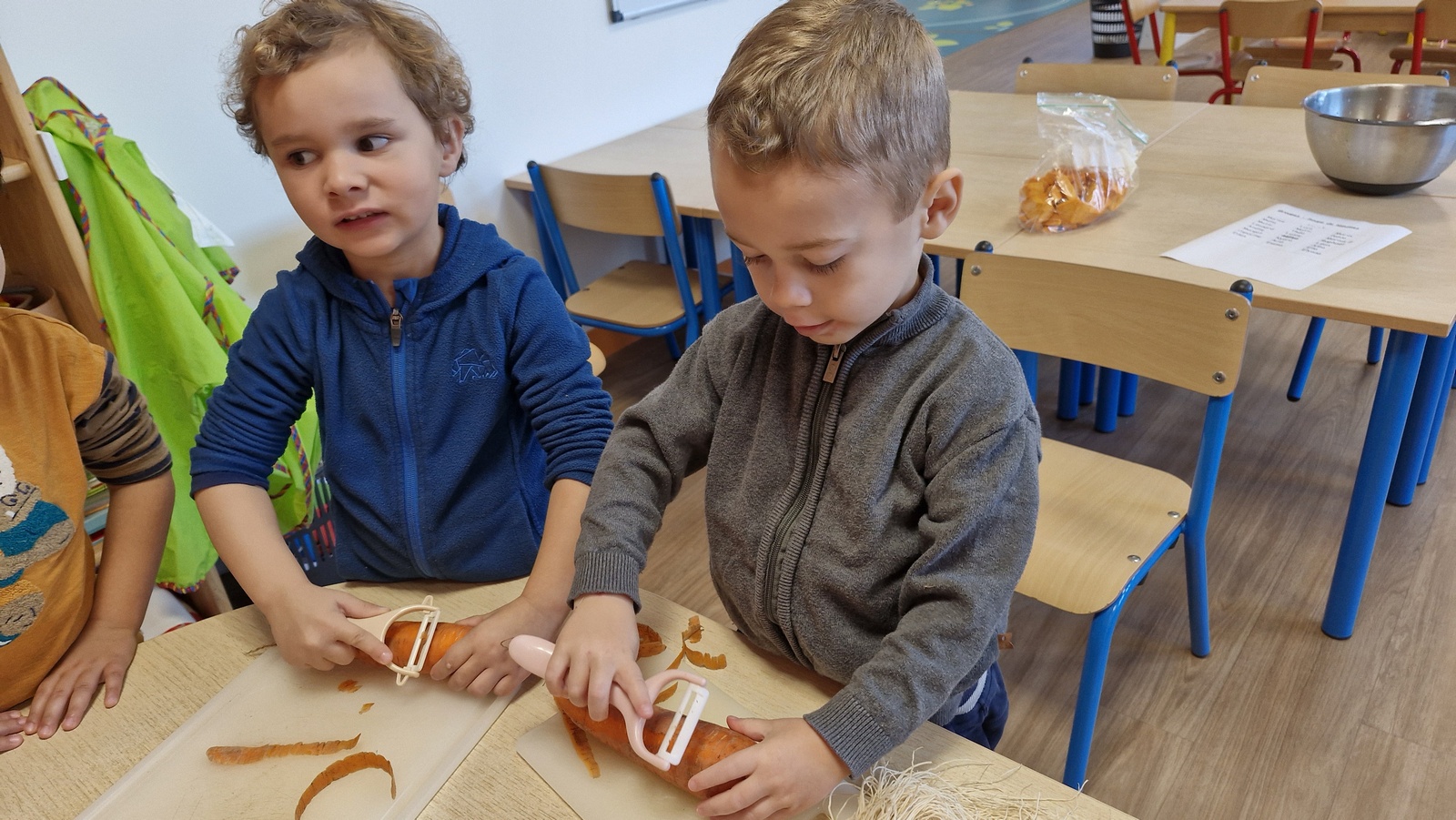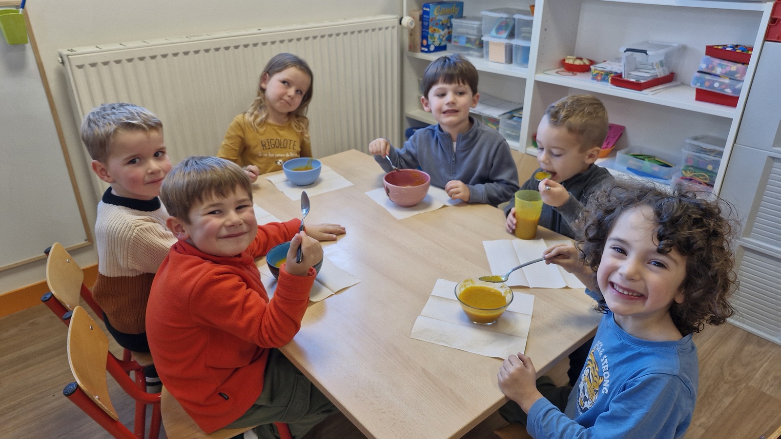 En lien avec un album vu en classe, nous avons préparé une soupe de légumes à l’école.