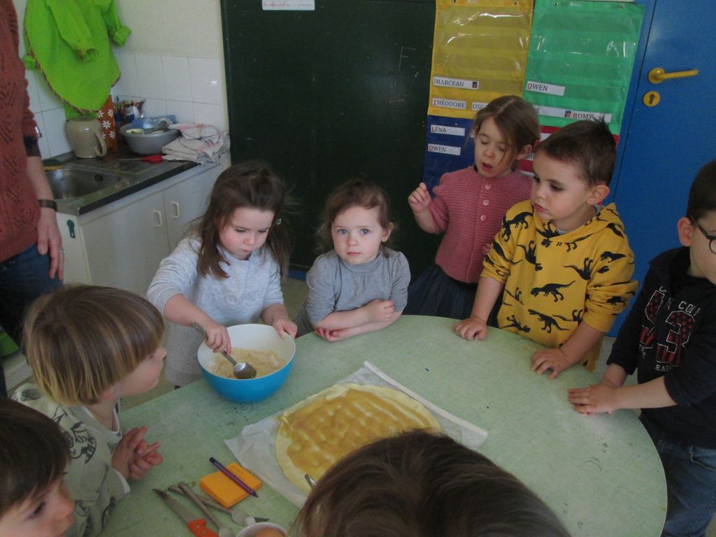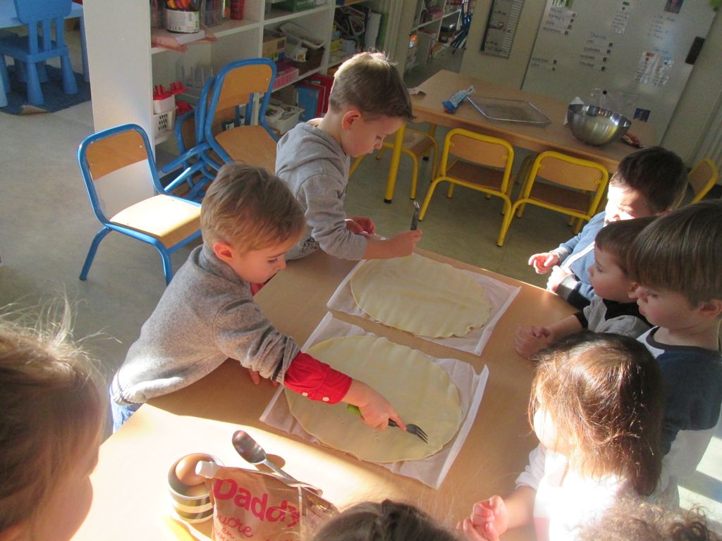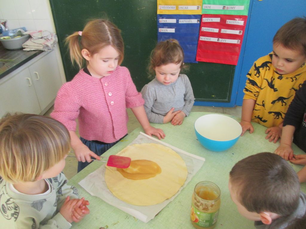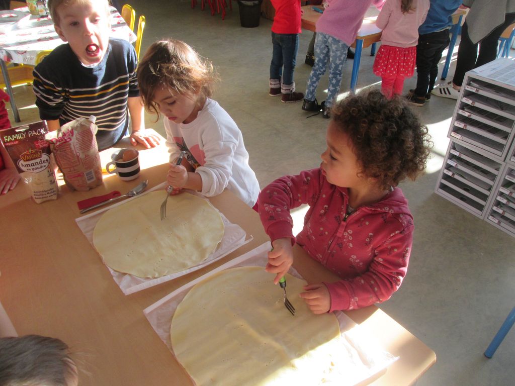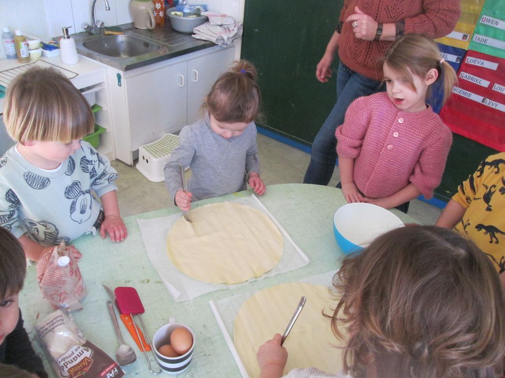 Après lu beaucoup de livres en lien avec cette fête célèbre du mois de Janvier (dont la traditionnelle histoire de « Roule Galette »), Lundi 25 janvier (après la sophrologie), nous nous sommes mis aux fourneaux.