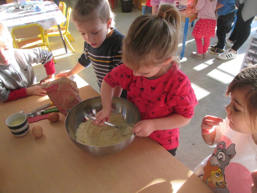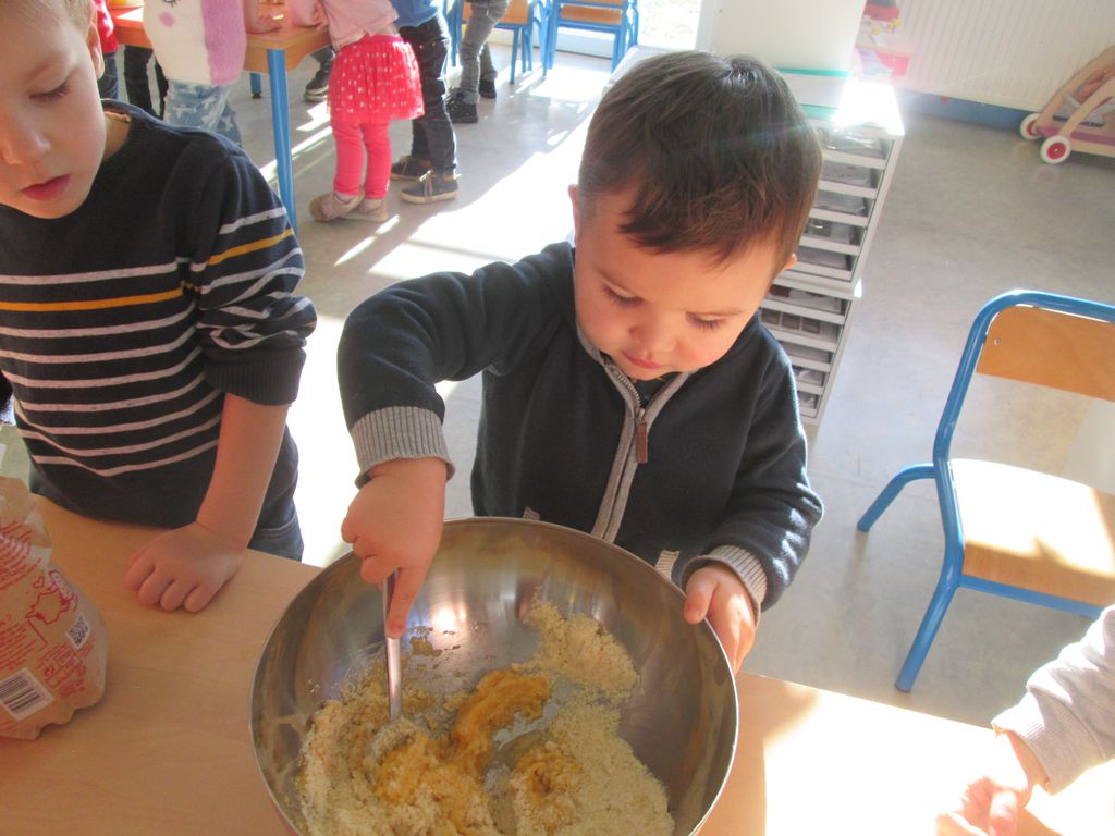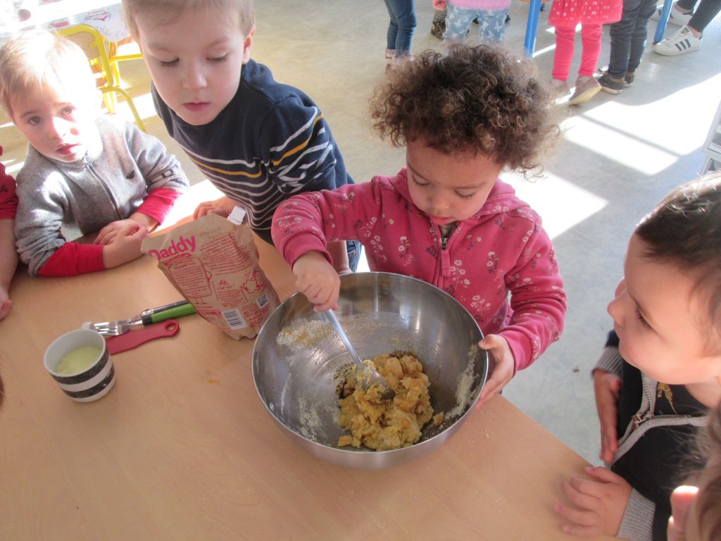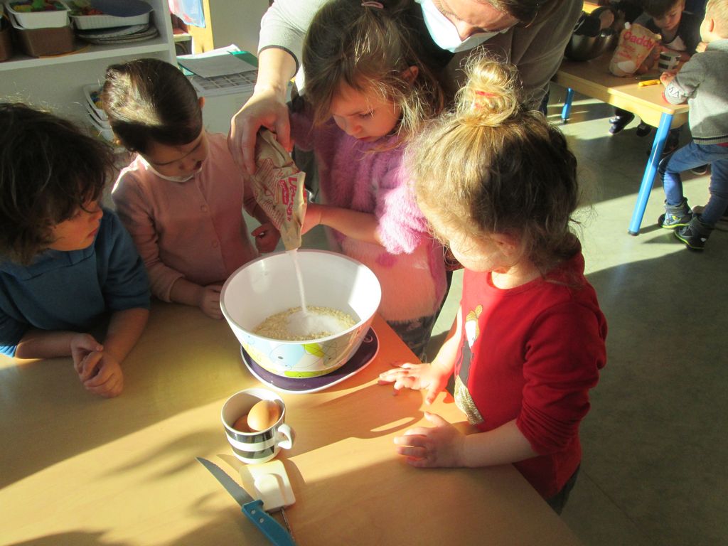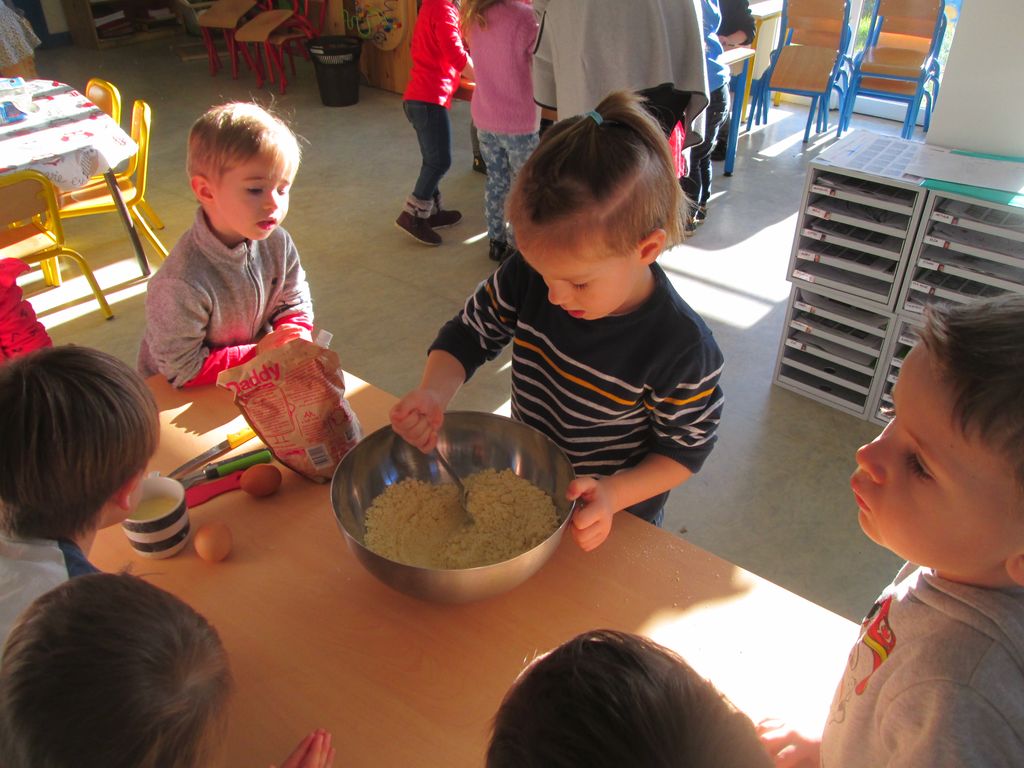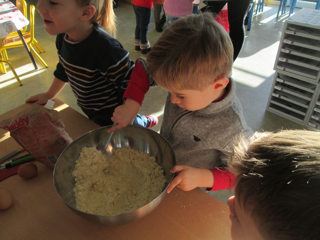 Après lu beaucoup de livres en lien avec cette fête célèbre du mois de Janvier (dont la traditionnelle histoire de « Roule Galette »), Lundi 25 janvier (après la sophrologie), nous nous sommes mis aux fourneaux.