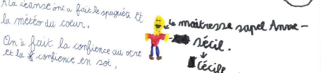 Les élèves de la classe de CP/CE1 ont bénéficié de 5 séances de sophrologie avec Anne – Cécile Duplessis. Ils ont travailler sur ‘la confiance en soi’.
