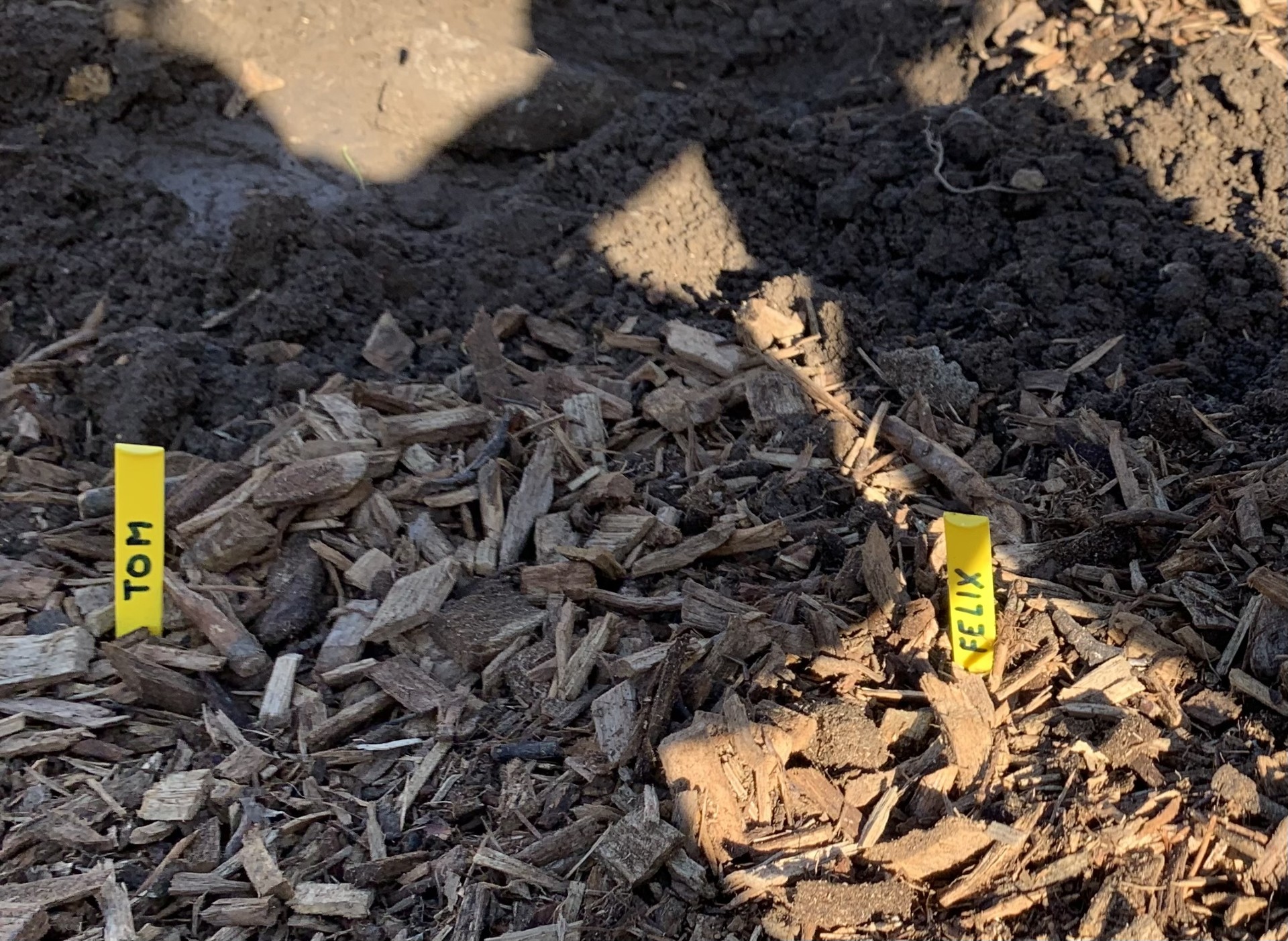 Nous avons planté dans la terre des bulbes de tulipes et les avons bien protégés du froid avec du paillage.