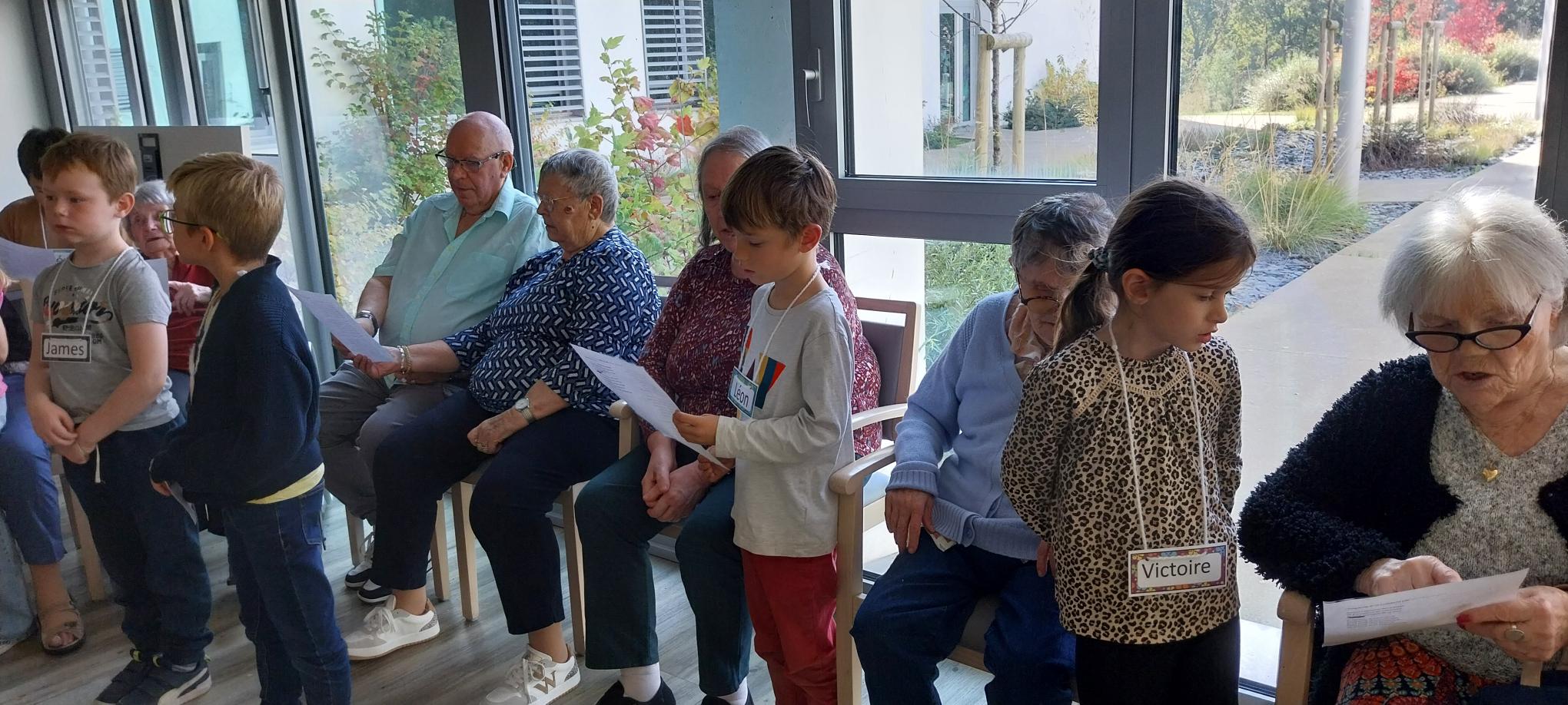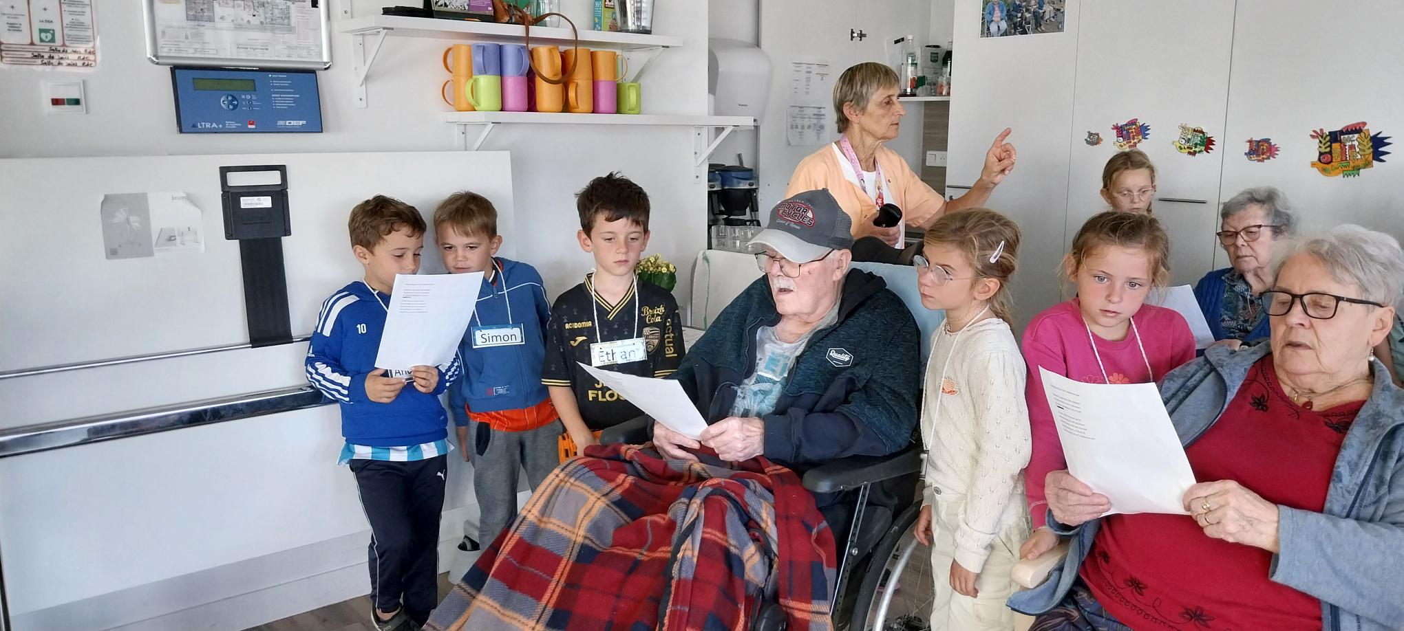 Pour clôturer la première période, les élèves de CP-CE1 ont rendu visite aux résidents de l’EHPAD.