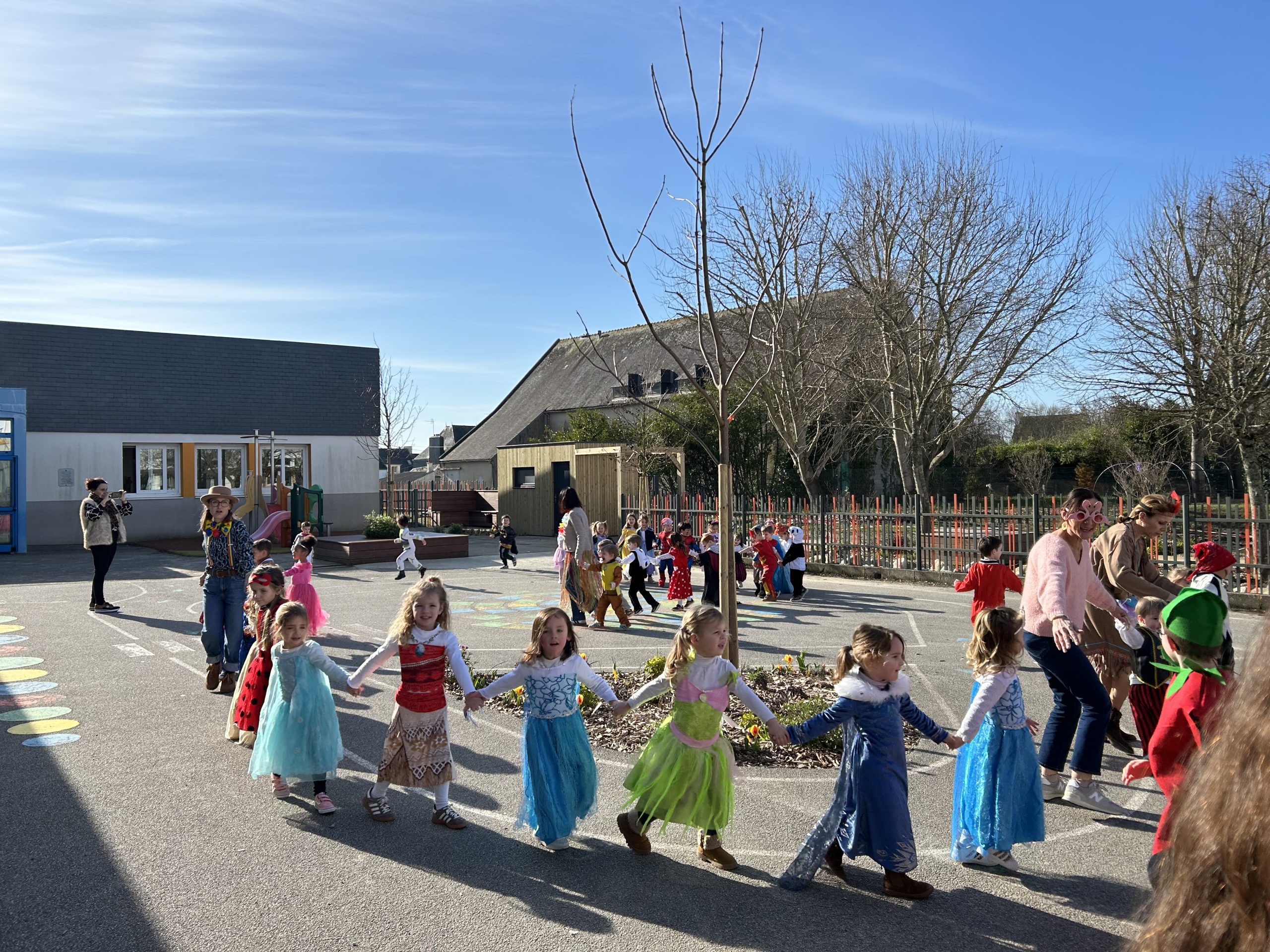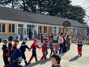 Sous un soleil radieux, la récréation s’est transformée en un véritable temps de partage. Petits et grands se sont retrouvés pour danser ensemble et former de grandes farandoles pleines de rires et de bonne humeur.